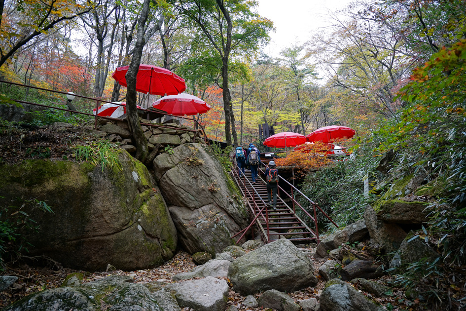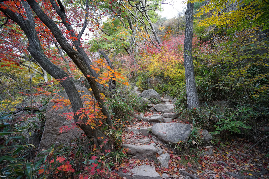 단풍이 화려하니 가파른 길도 오솔길처럼 정겹다.