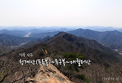 동남쪽으로 왼쪽 악휘봉에서 오른쪽 대야산까지의 조망..