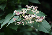 꽃은 7-10월에 원줄기 끝에 술 모양의 자잘한 꽃이 두상꽃차례로 피며 꽃색은 흰색 또는 연한 자색이다. 키는 높이 2m에 달하며 곧게 서고 전체에 가는 털이 있으며 원줄기에 자줏빛이 도는 점이 있다. 밑부분의 잎은 작고 꽃이 필 때 쯤이면 없어지고 중앙부의 큰 잎은 마주나고 잎자루가 짧게 있으며 긴 타원형이고 가장자리에 톱니가 있다. 잎 양면에 털이 있고 뒷면에 선점이 있다.
