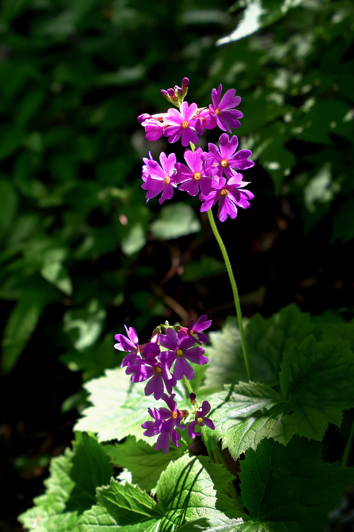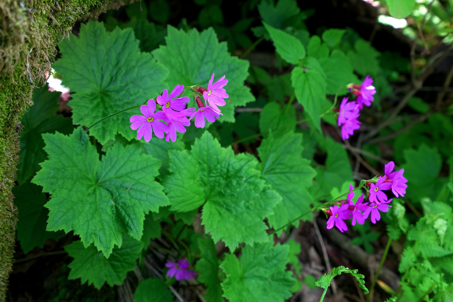 꽃은 7-8월에 붉은빛이 도는 자주색으로 피며 통꽃이다. 잎 사이에서 나온 꽃대 끝에 1~4층을 이루며 각 층에 5~6개의 꽃이 달린다. 화관은 통 모양이며 끝이 5개로 깊게 갈라진다. 잎은 뿌리에서 뭉쳐나고 잎자루가 길며 비스듬이 선다. 잎몸은 둥글고 밑 부분이 심장 모양이며 가장자리가 손바닥 모양으로 얕게 갈라지고 불규칙한 톱니가 있다. 키는 30cm 내외이며 줄기는 없고 전체에 잔털이 난다.