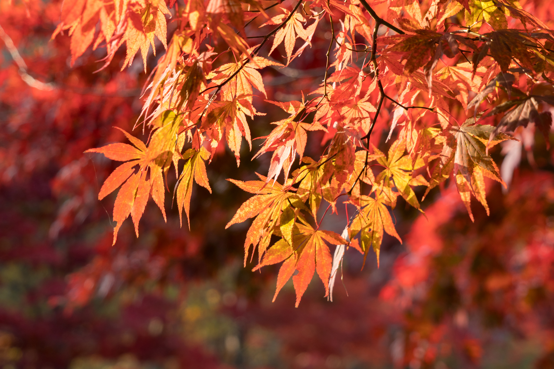석천암 아래 산자락에 늦가을 단풍이 오후의 햇살에 화려하게 빛나고 있다.