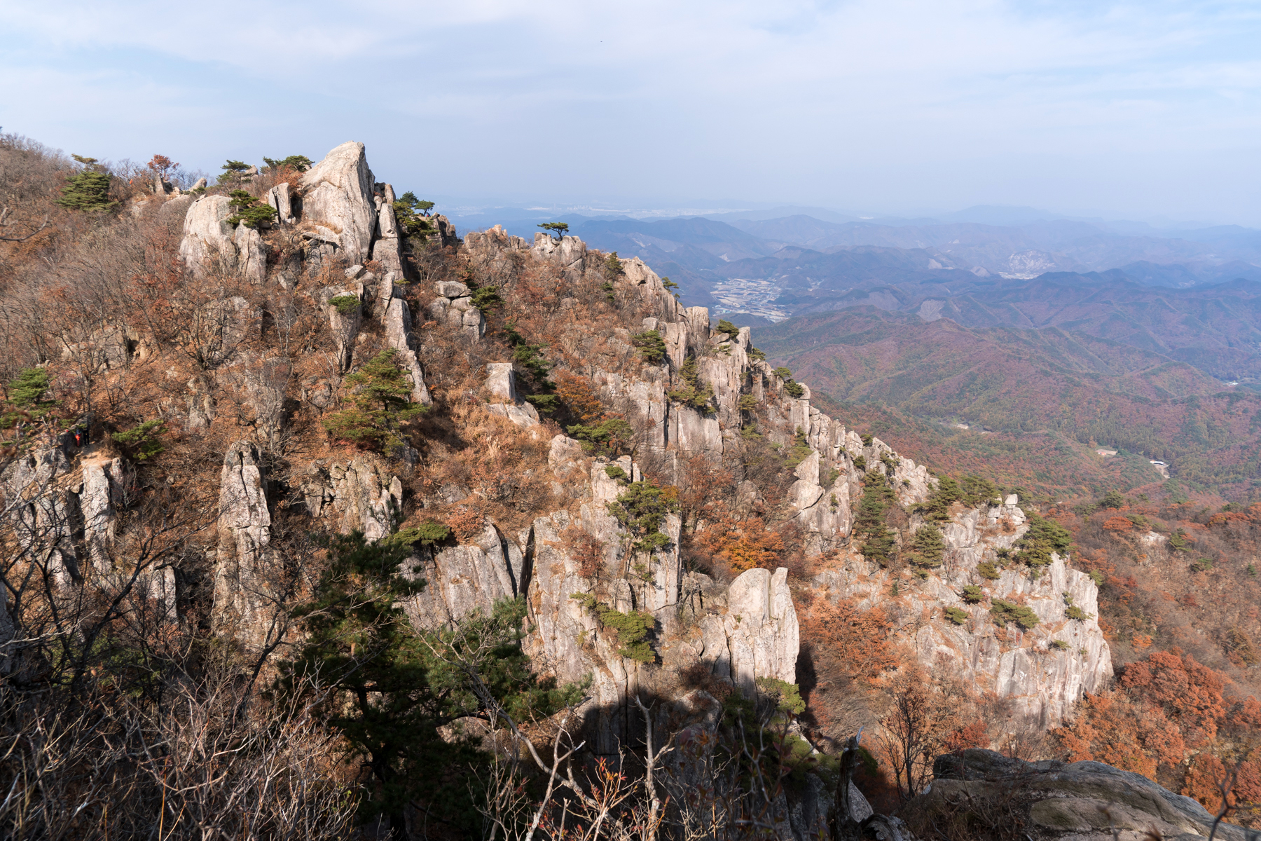 대둔산의 절경을 마주할 수 있는 여러 코스 중 서각봉에서 낙조대에 이르는 주능선 길은
