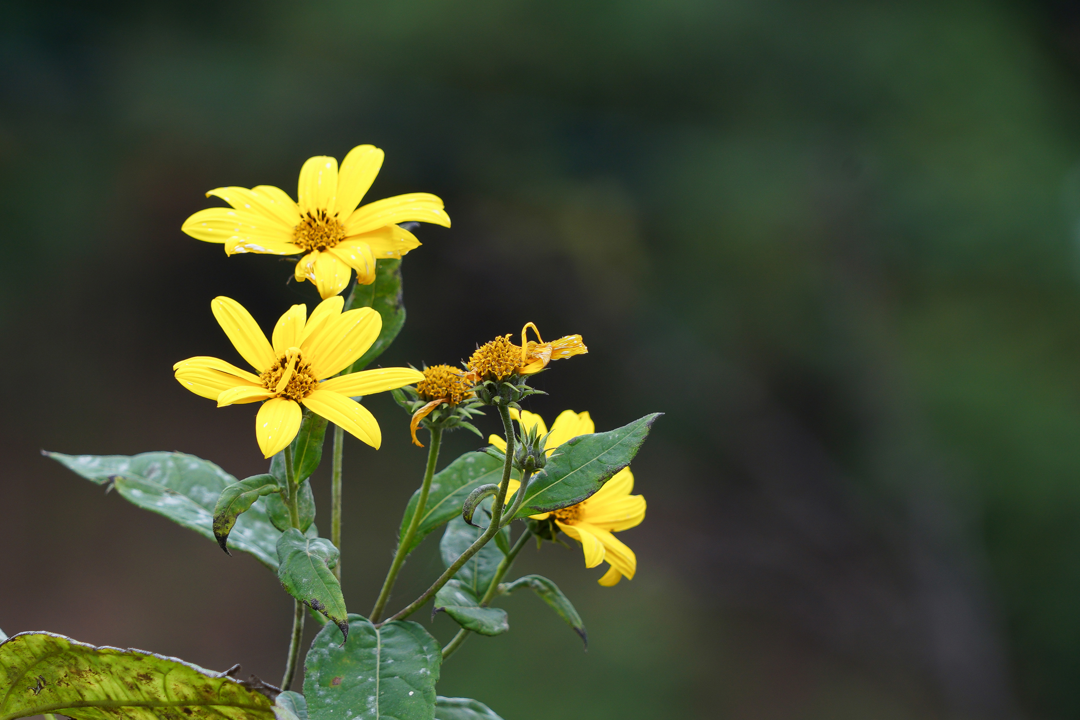 꽃은 9∼10월에 피고 줄기와 가지 끝에 두상화(頭狀花)로 달린다. 두상화 가장자리에 있는 설상화는 노란 색이고 꽃잎이 10개 이이며, 두상화 가운데 있는 관상화는 노란색 · 갈색 · 자주색이다. 총포는 반구형이고, 총포 조각은 바소 모양이며 끝이 뾰족하다.