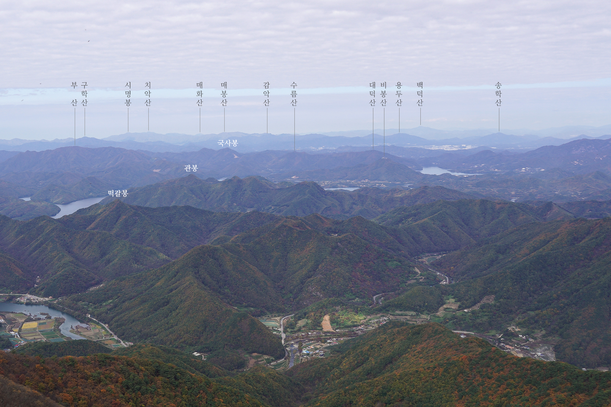 대미산이 보이는 남동쪽 조망