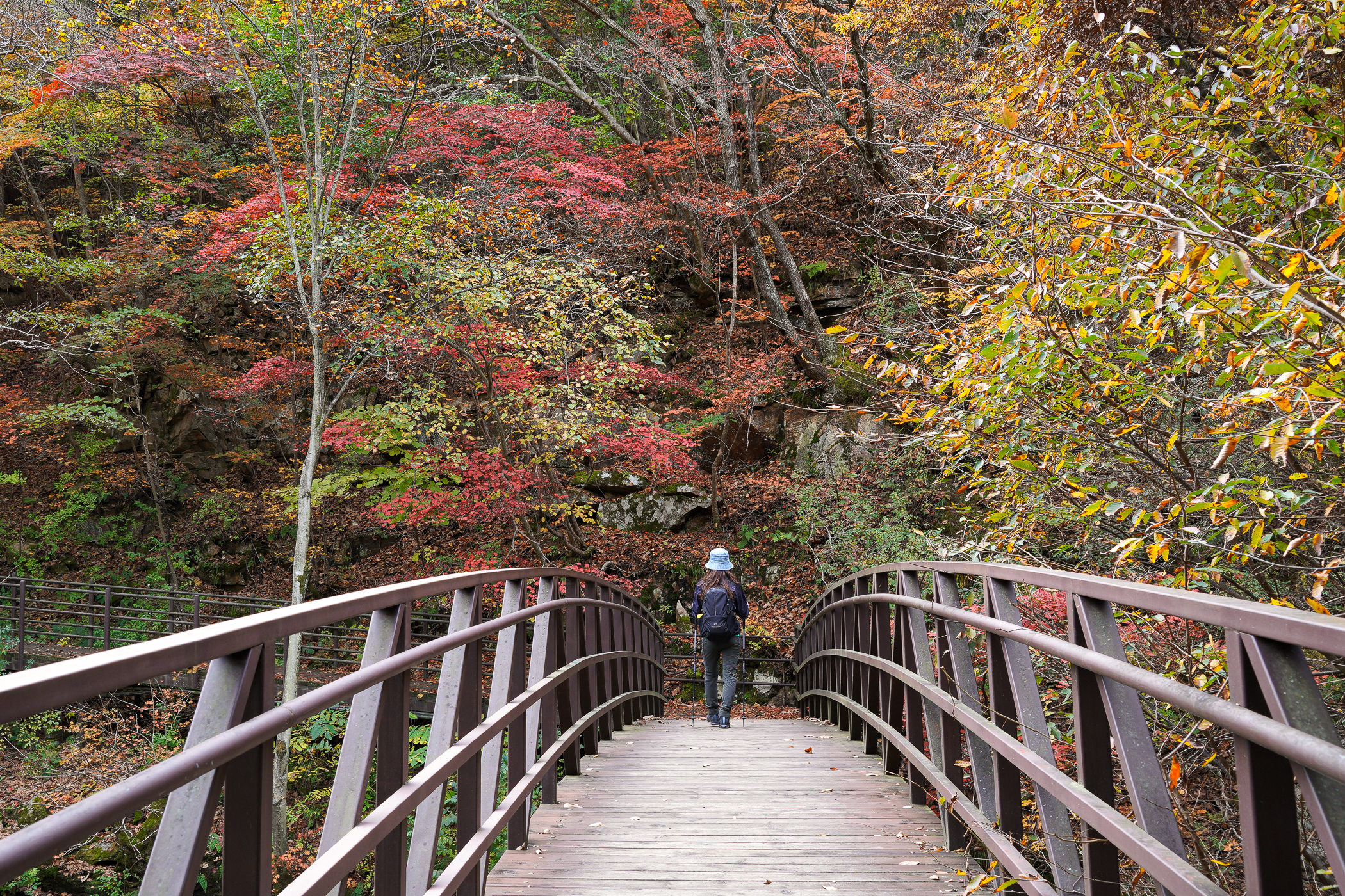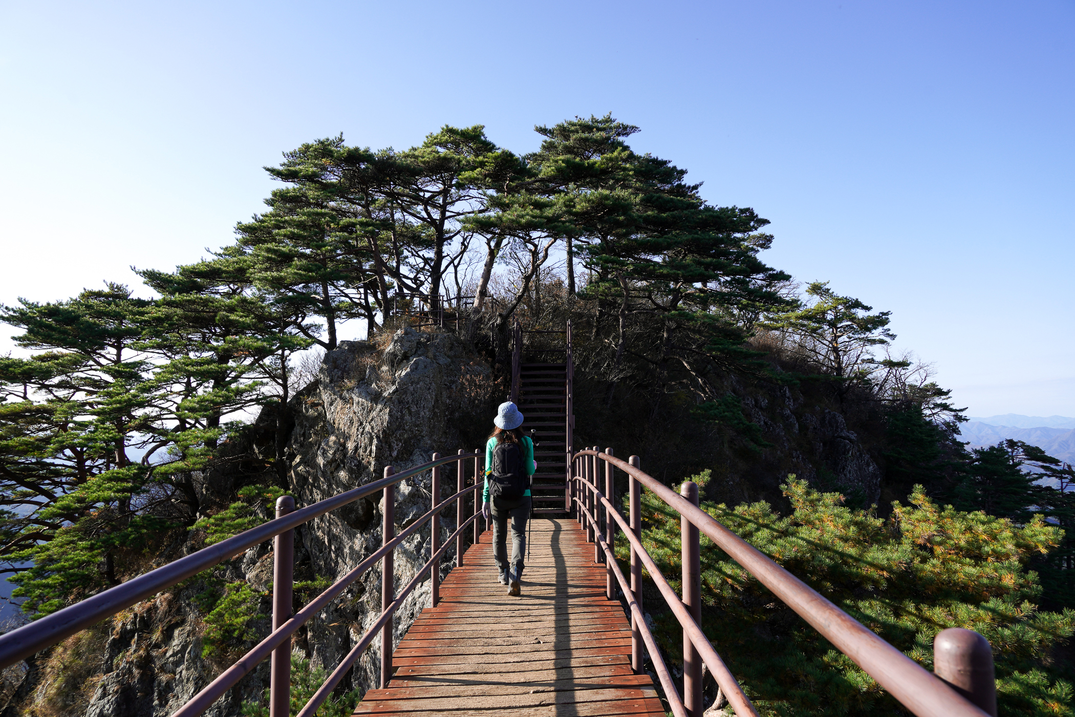 안전한 계단길이지만 고도가 높아지면서 점점 고소 공포증이 느껴지고, 웅장하게 펼쳐진 깎아지른 암벽을 바라보며 짜릿한 스릴을 맛보기도 한다.