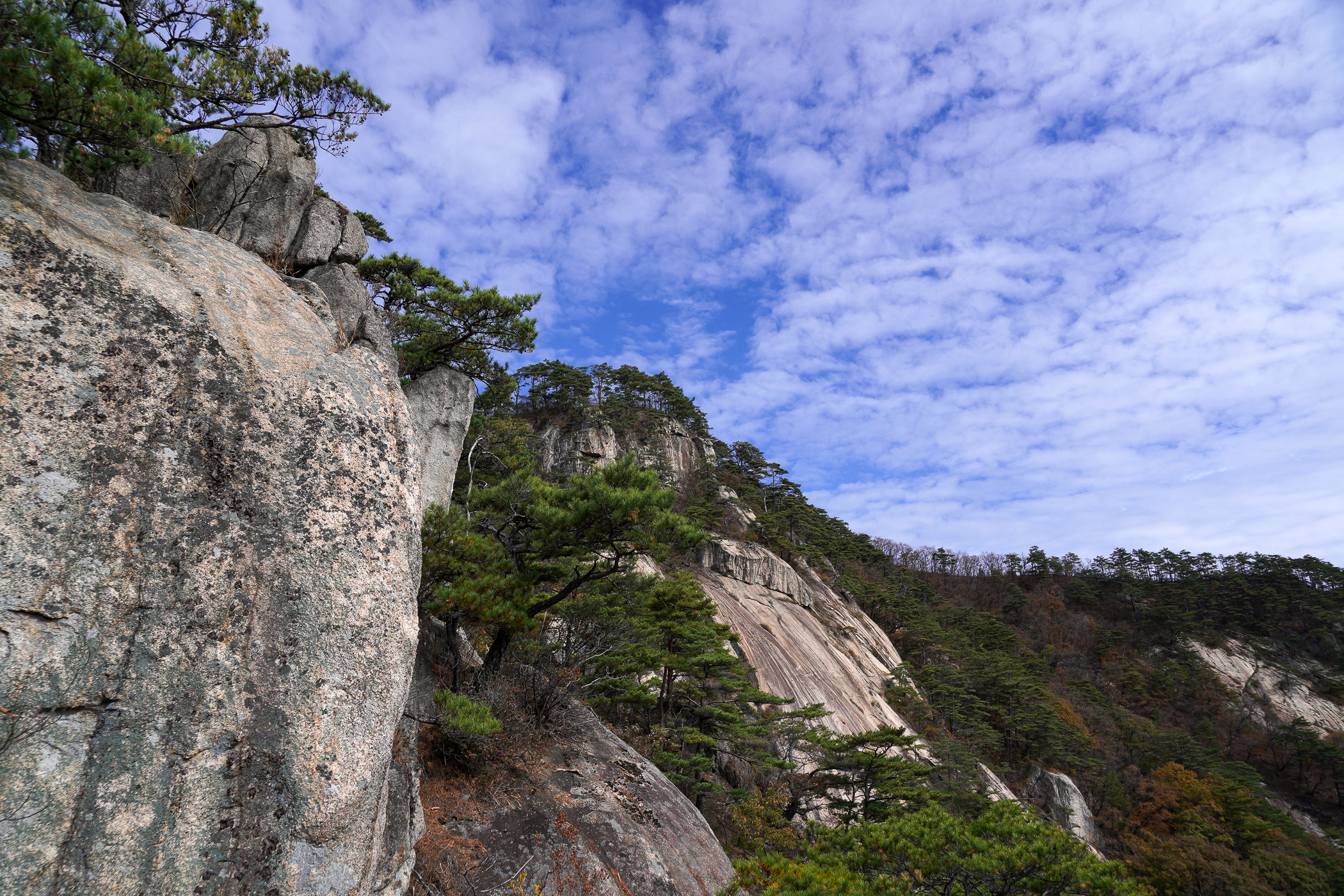 흰구름과 조화를 이루는 암릉