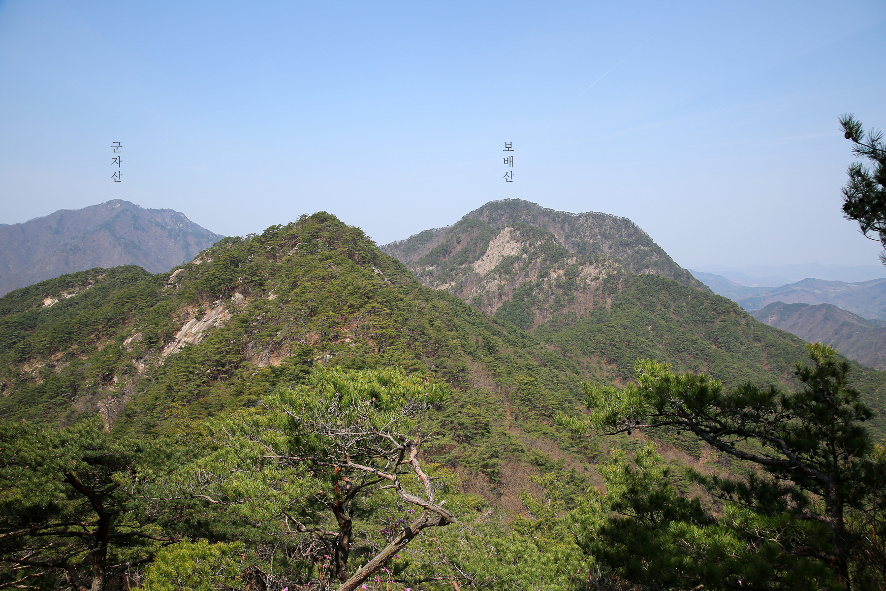 칠보산 버선코바위에서 바라본 군자산과 보배산