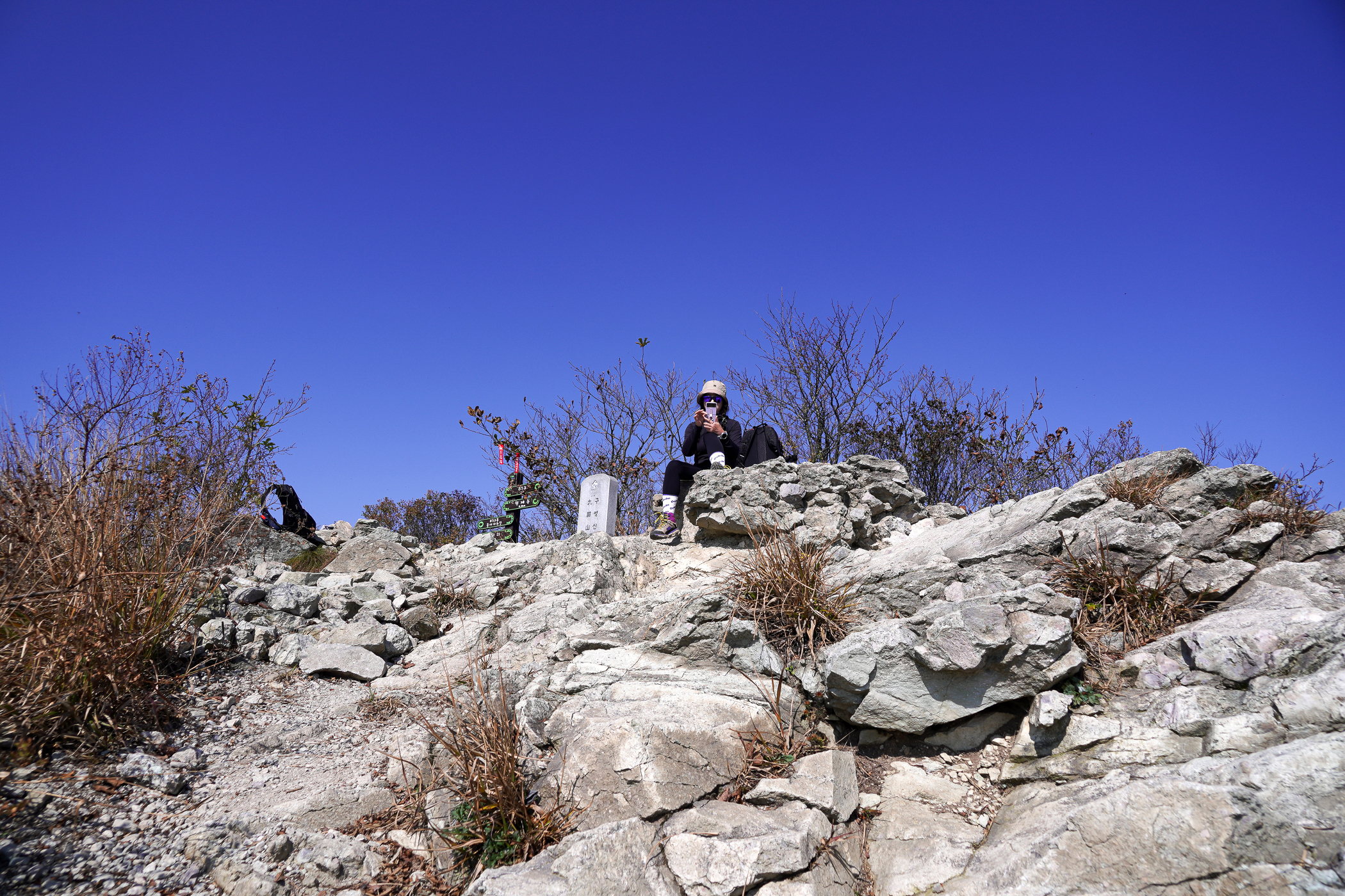 신선대에서 만났던 여성 한 분이 먼저 정상에 도착하여 쉬고 있었다. 포항에서 혼자 오셨다고 하며, 산행 걸음이 무척 빠른 분이었다. 그런데 우리와 같은 코스로 하산할 예정인데, 스틱을 안 가져와 내려갈 일이 걱정이라 하길래 스틱 하나를 빌려 드렸다. 우리가 점심을 먹는 사이에 먼저 하산하였고, 나중에 주차장의 약속된 위치에 스틱을 놓고 가셨으니 무사히 잘 다녀가신 걸 확인할 수 있었다. 이분 역시 산행 중에 만난 대단한 분이었다.