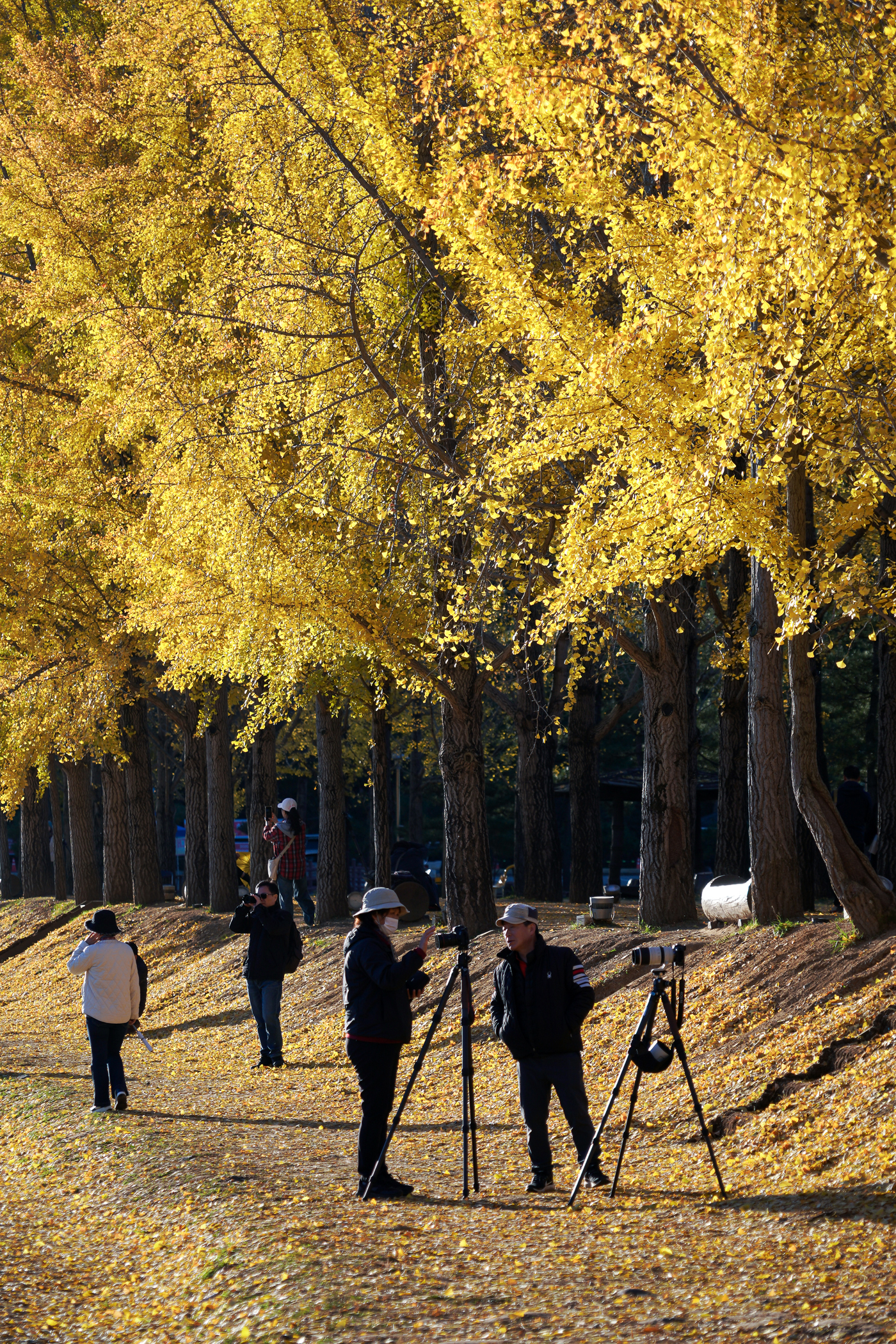 절정에 이른 단풍이 금세 지듯 노랗게 물든 은행잎도 그리 오래가지 않는 듯하다. 잎이 져버린 나뭇가지가 썰렁해 보이지만 대신 떨어져 쌓인 노란 은행잎들로 바닥은 황금빛으로 변해있다.