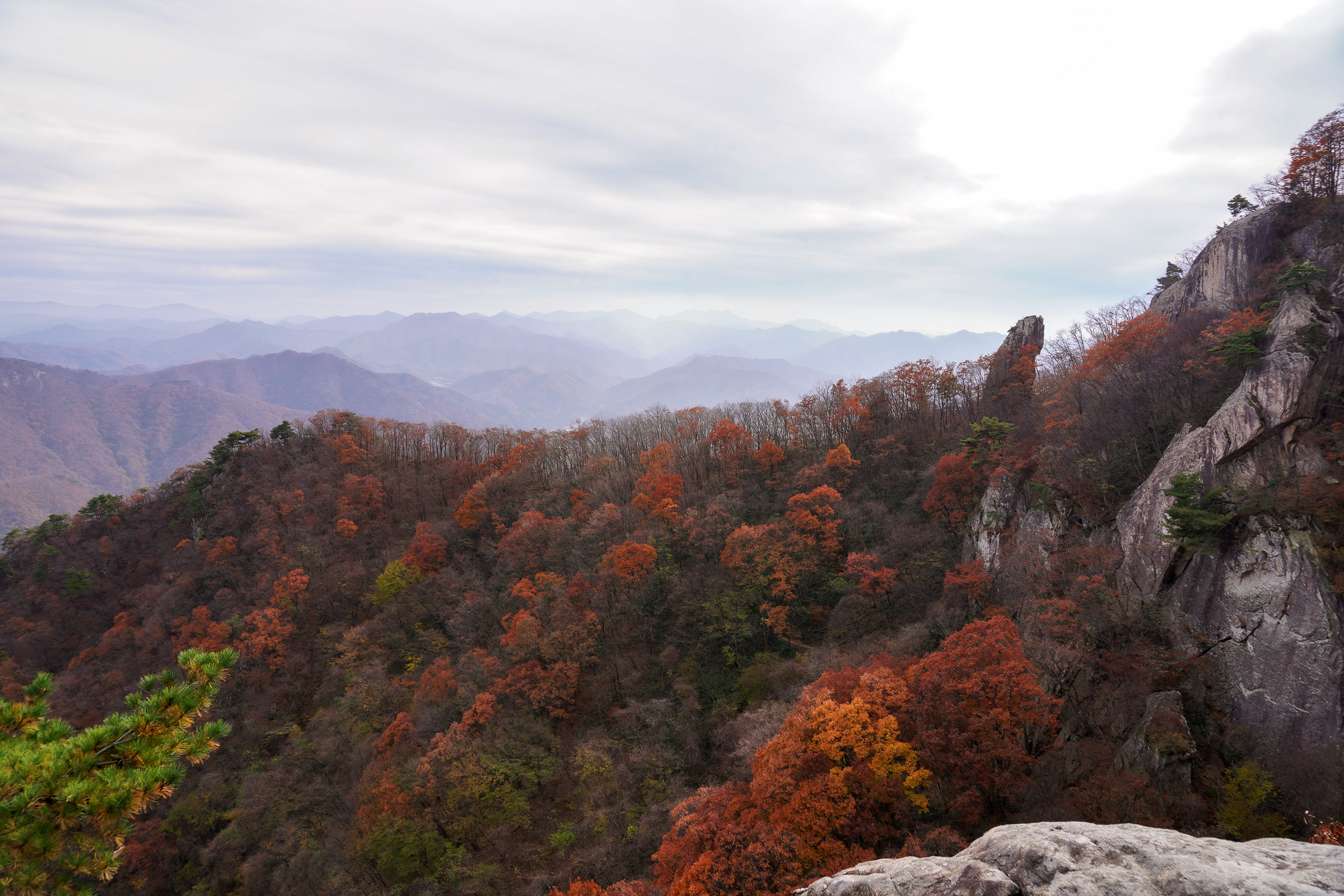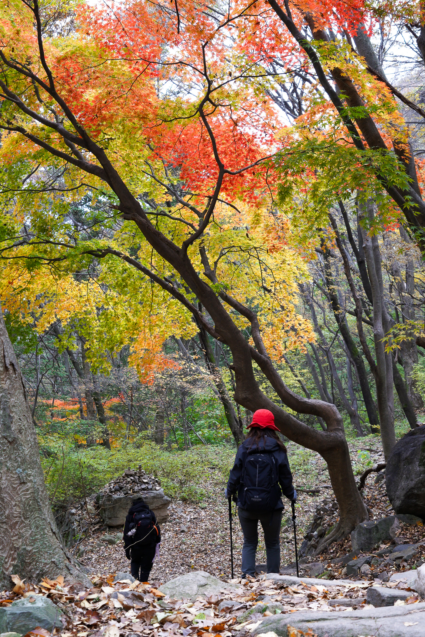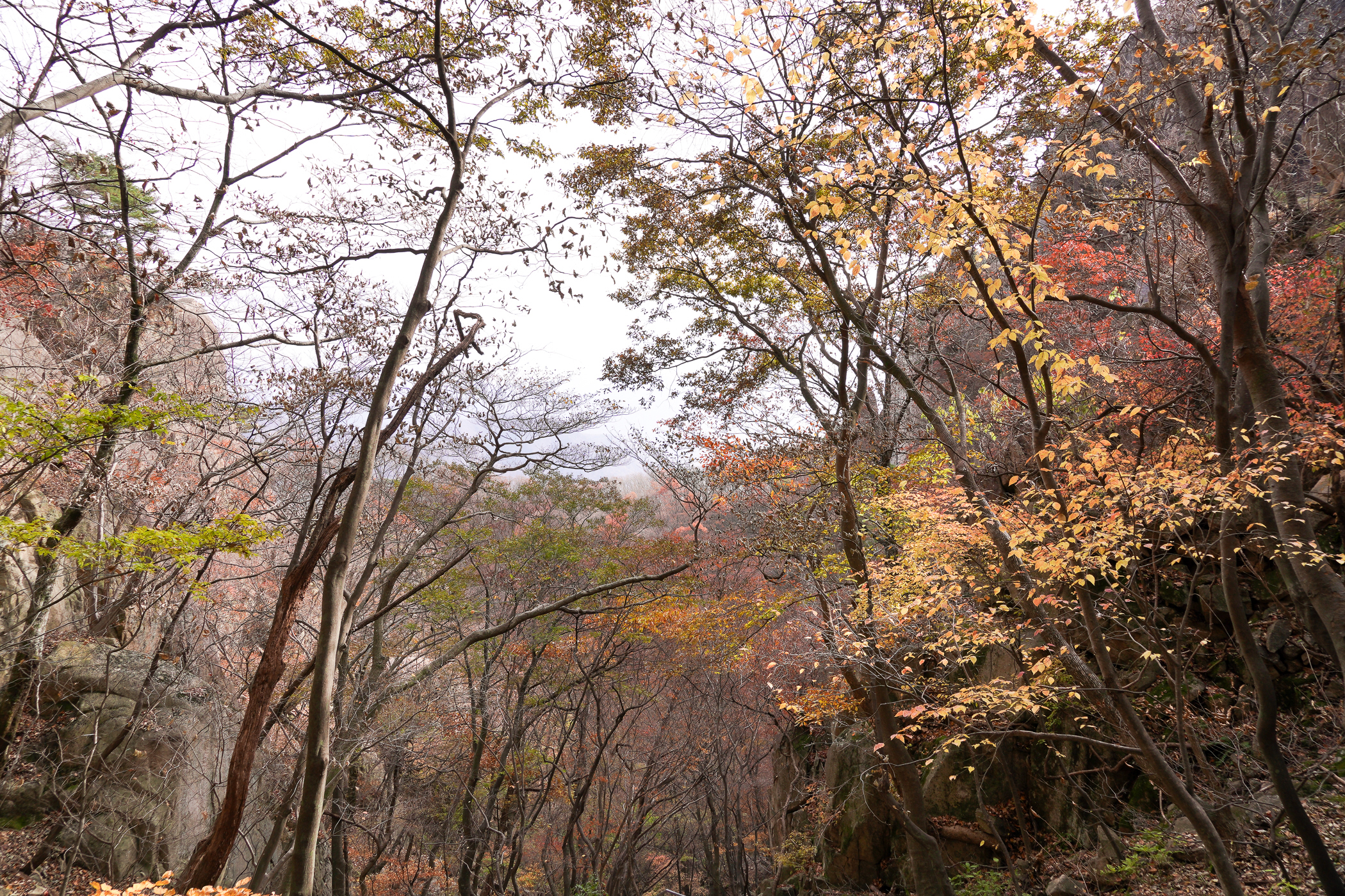 동심정을 지나고 하산 막바지에 이르러 올라갈 때 느끼지 못했던 멋진 단풍 풍경을 마주한다. 전반적으로 단풍 절정기가 조금 지난 시기지만 이곳은 아직도 화려한 경관을 보여준다.