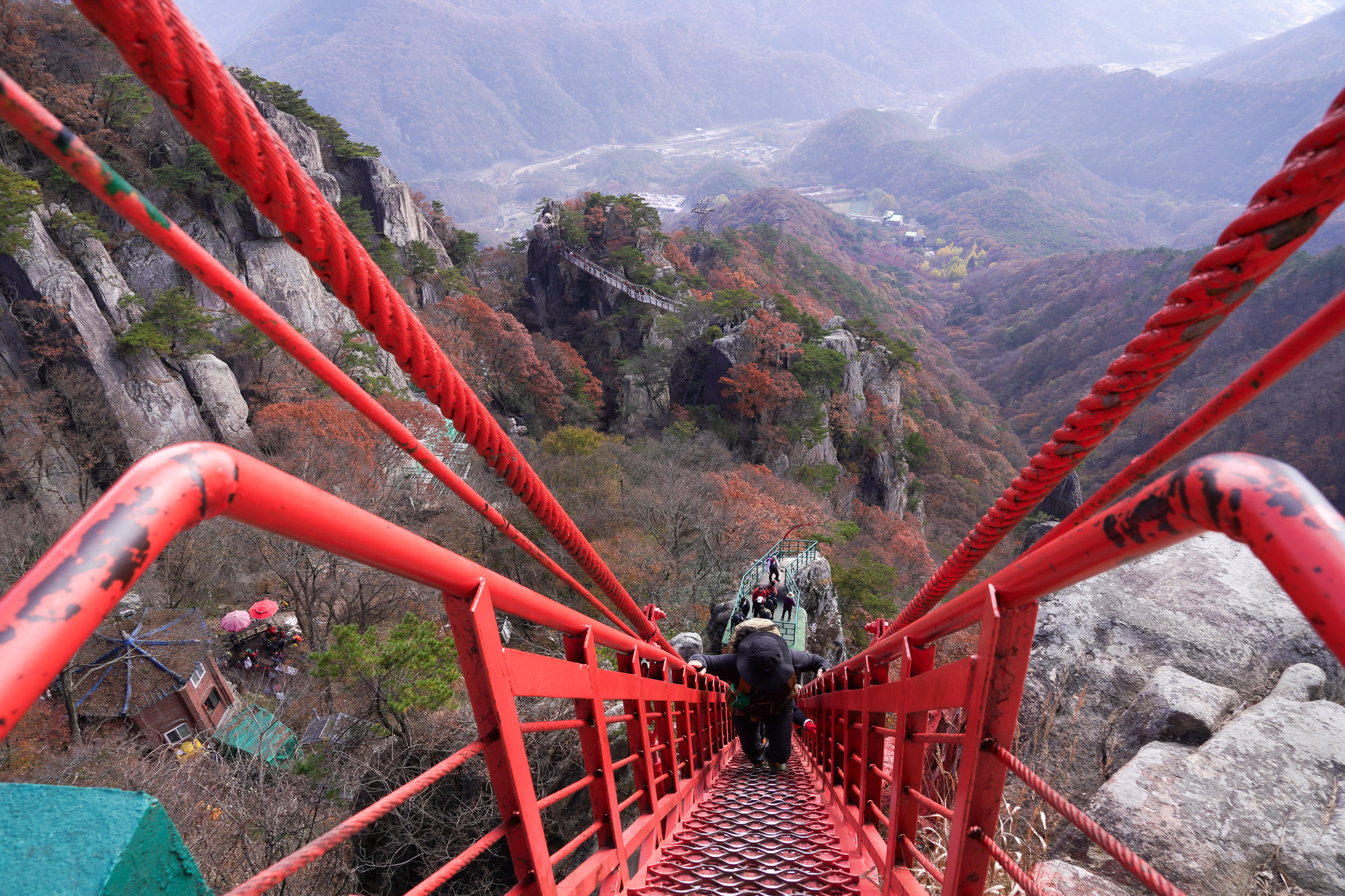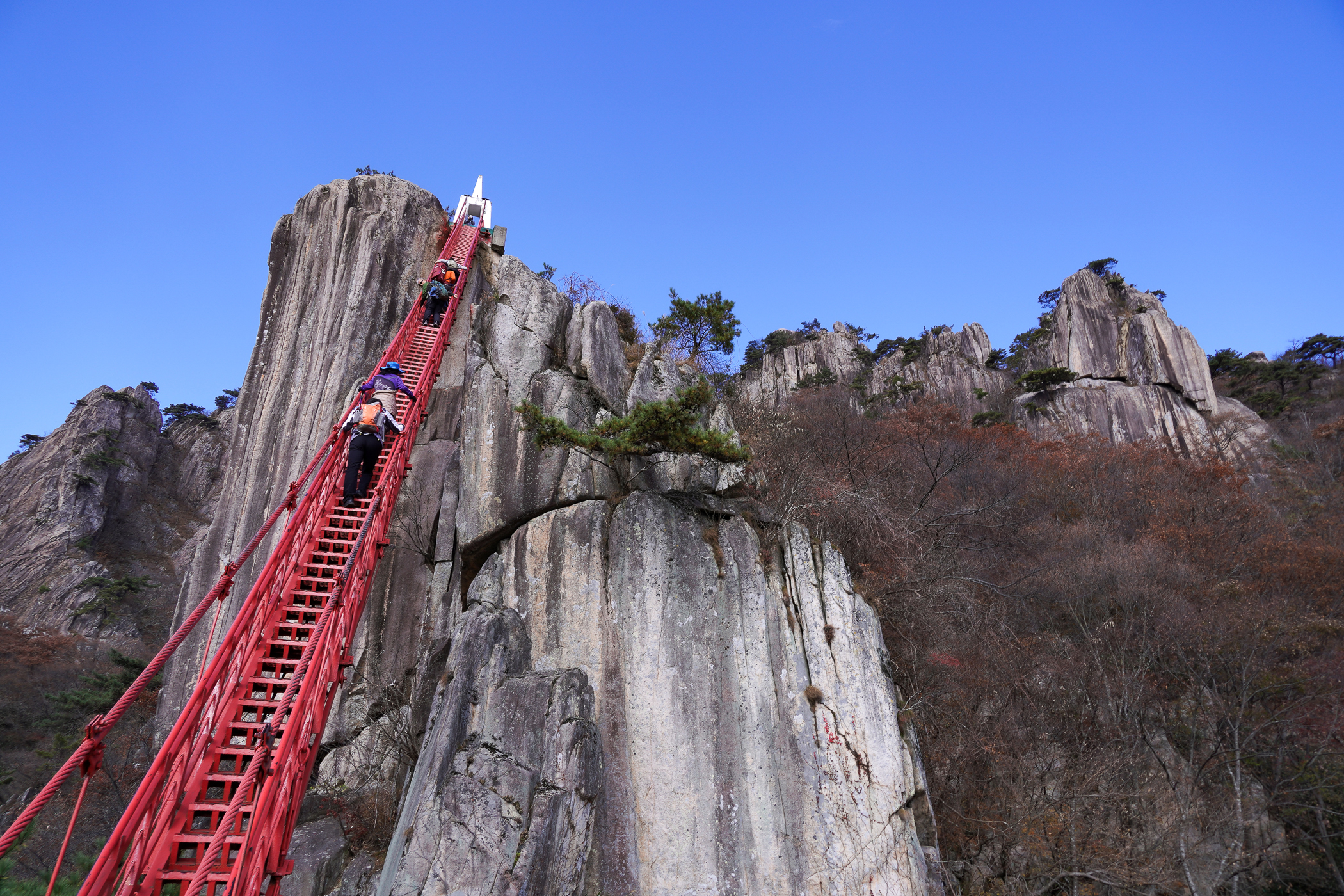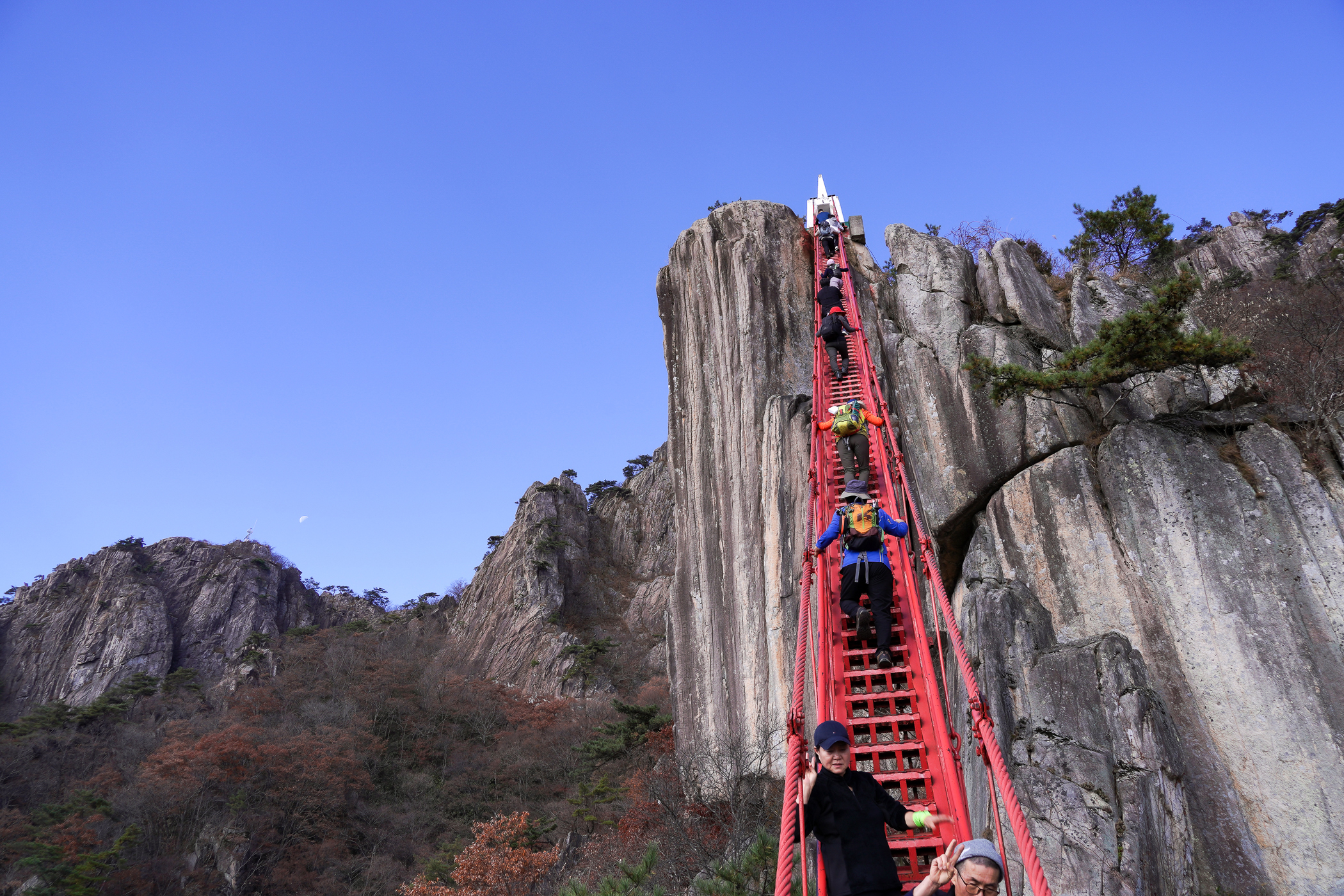 구름다리를 지나면 삼선바위를 오르는 철계단을 만난다. 이곳을 여러 번 올라봤지만 매번 익숙지 않은 경사도에 공포감이 느껴진다.