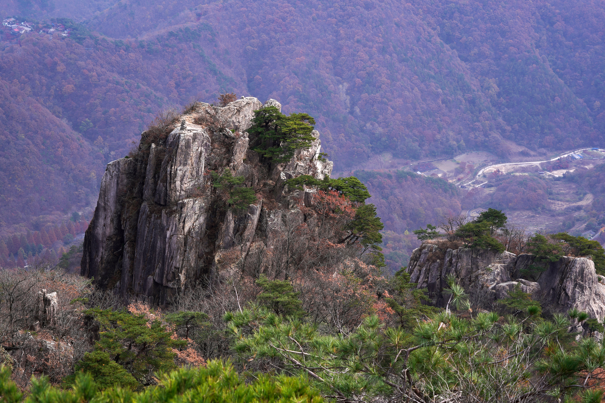 마천대에서 칠성봉 암릉을 따라 낙조대로 이어가는 것도 좋은 산행코스가 된다. 사진에서 보이는 바와 같이 대둔산 서쪽 사면은 깎아지른 절벽을 이루는 동쪽 사면과 달리 비교적 경사가 완만한 모습을 보이고 있다.