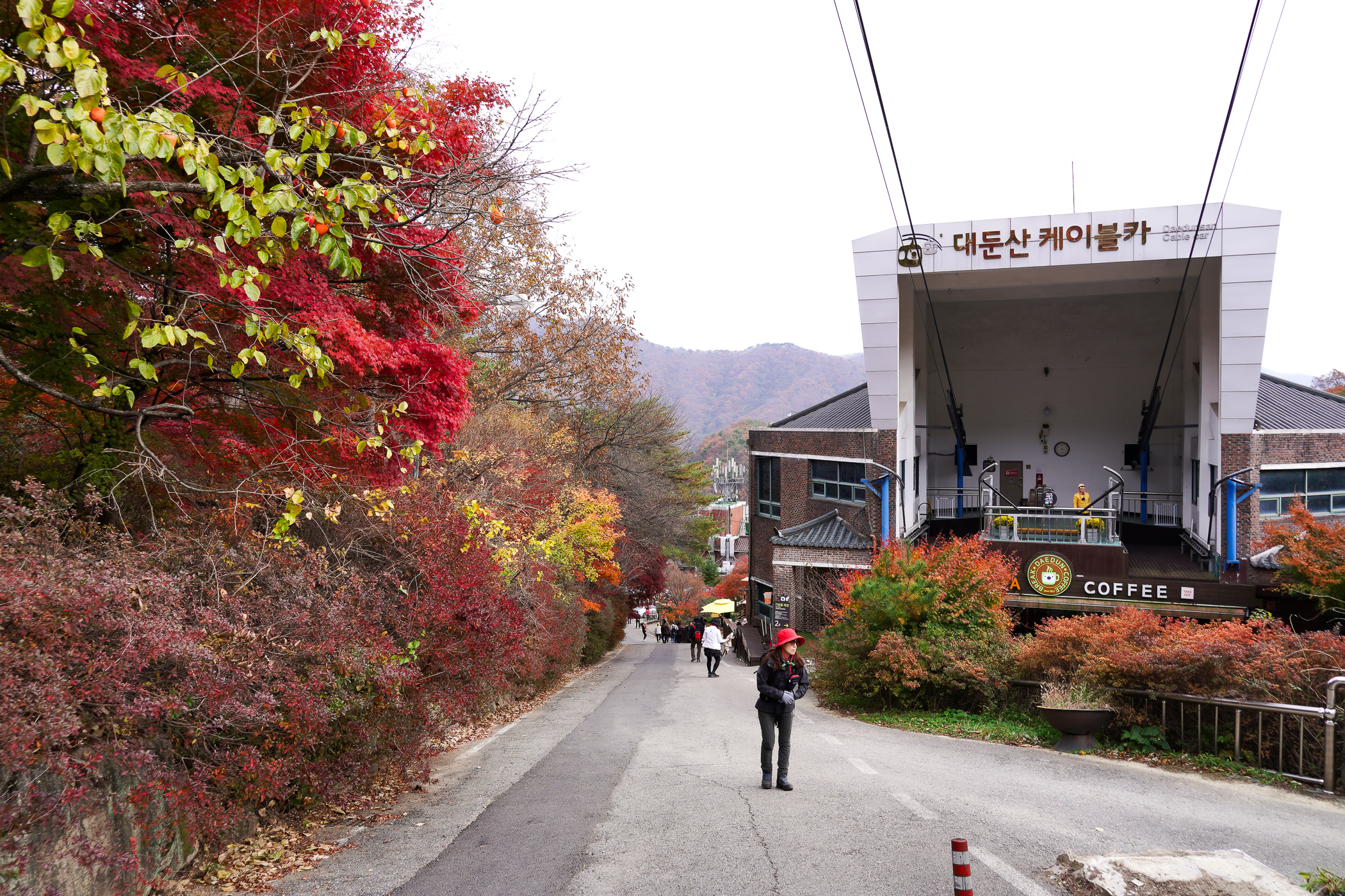 공원 주차장을 출발하여 케이블카 탑승장으로 향하는 진입로에 절정을 지나고 있는 화려한 단풍이 눈길을 끈다.