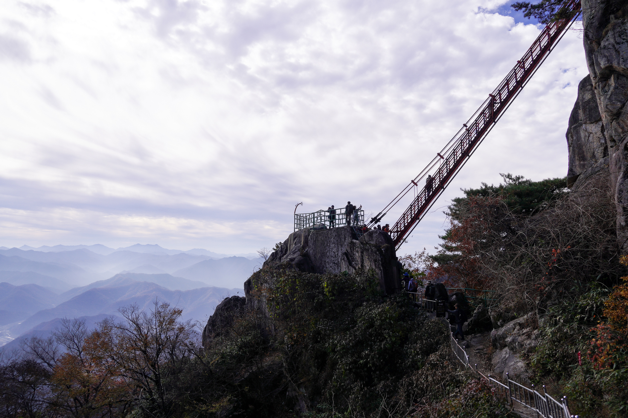머리 위로 금강구름다리가 보일 때쯤이면 연속되는 급경사에 다리에 힘이 빠지고 숨이 차 오른다. 이쪽 코스는 대둔산을 오르는 대표적인 코스지만, 급경사의 돌길로 이어져 짧은 거리임에도 만만치가 않다.